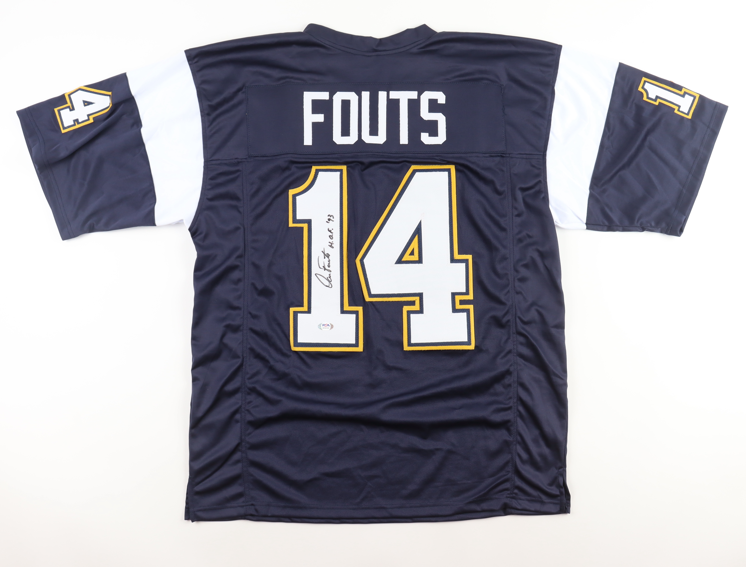 Custom jersey. Everything is sewn on, size XL. Hand-signed and inscribed by Dan Fouts (HOF).