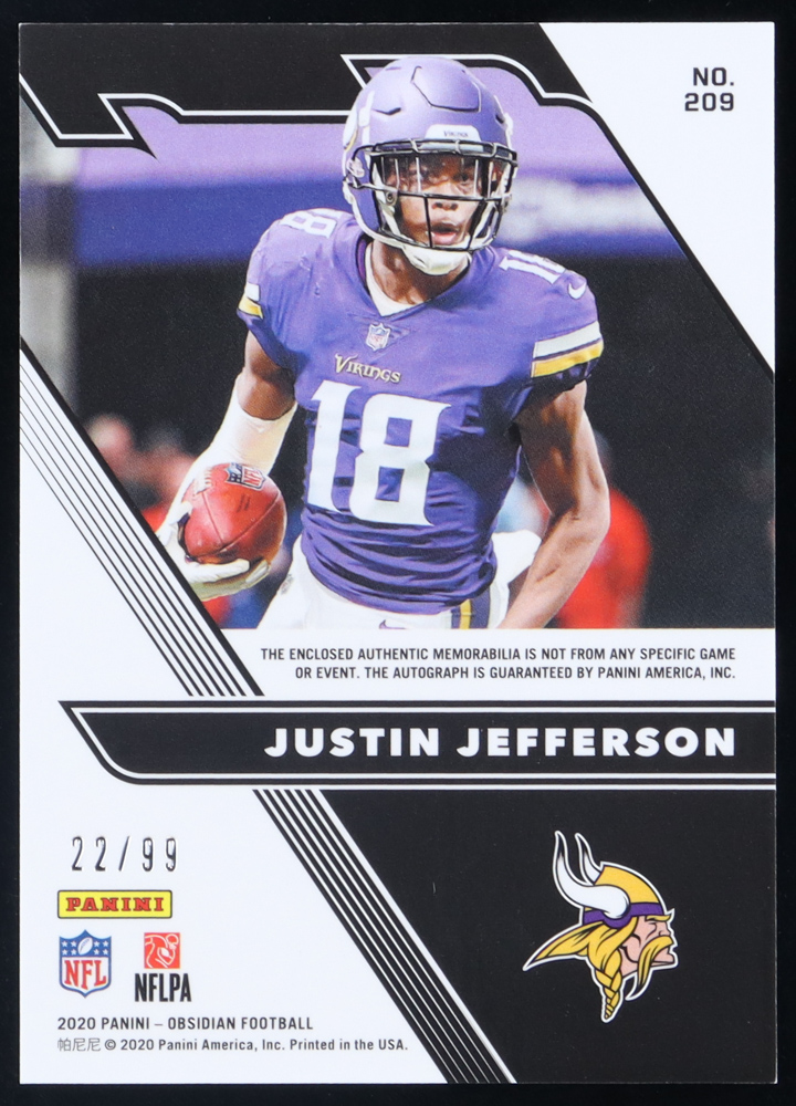 Justin Jefferson 2020 Panini Obsidian Rookie Jersey Autographs Electric Etch Orange #209 #22/99 RC