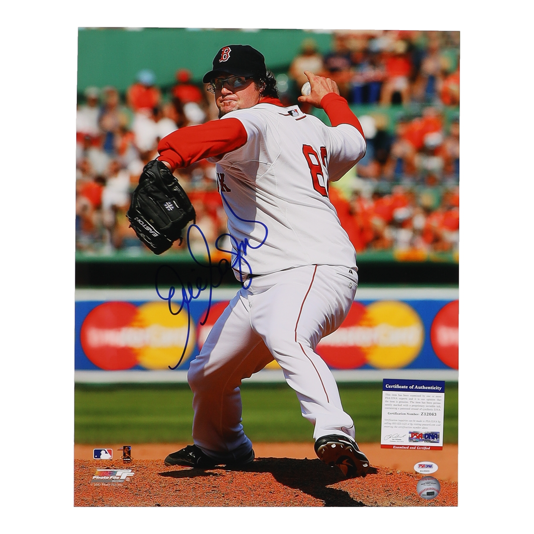Photo measures approximately 16" x 20" in size. Hand-signed by Eric Gagne (Los Angeles Dodgers).