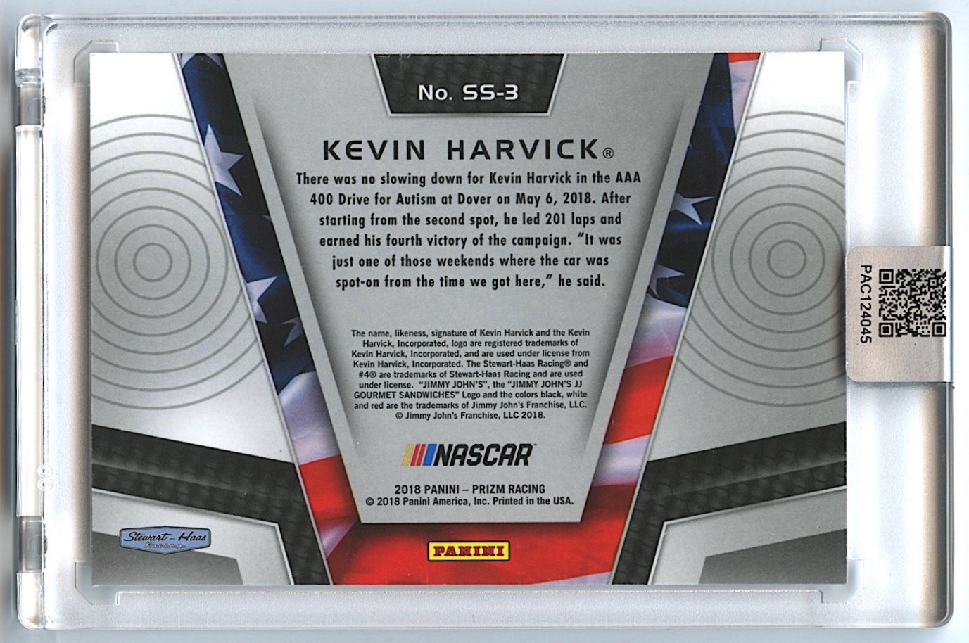 Kevin Harvick Signed 2018 Panini Prizm Stars and Stripes #3 (PA Encapsulated)