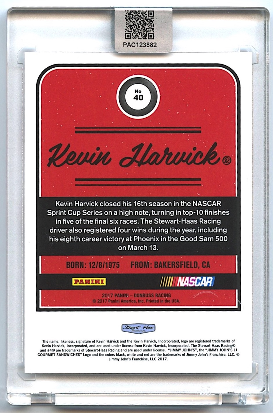 Kevin Harvick Signed 2020 Donruss #40 (PA Encapsulated)