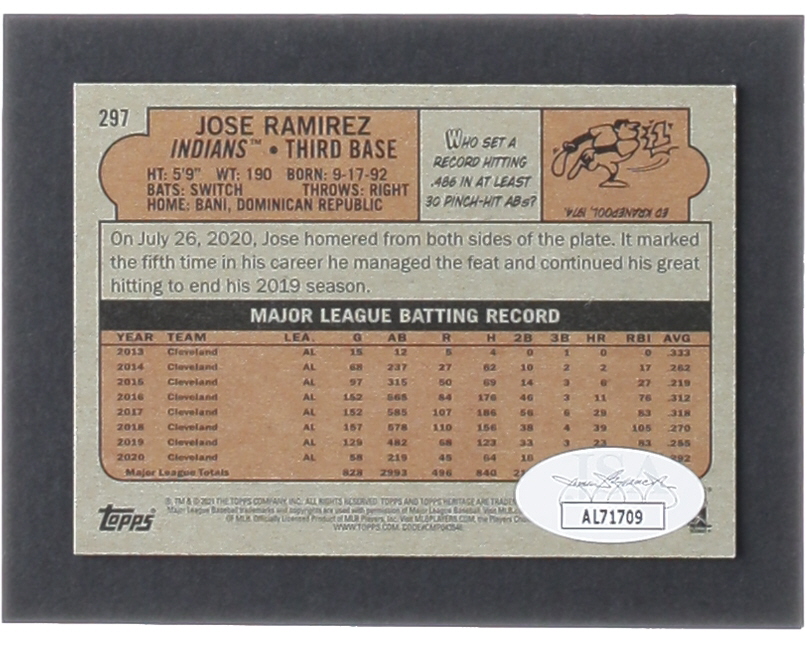 Jose Ramirez Signed 2021 Topps Heritage #297 (JSA)