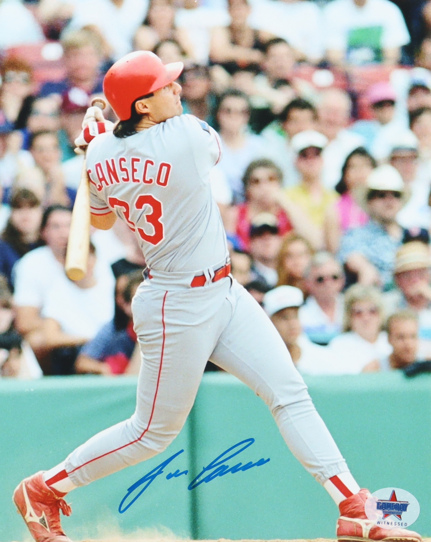Photo measures 8" x 10" in size and has been hand-signed by Jose Canseco (Texas Rangers).