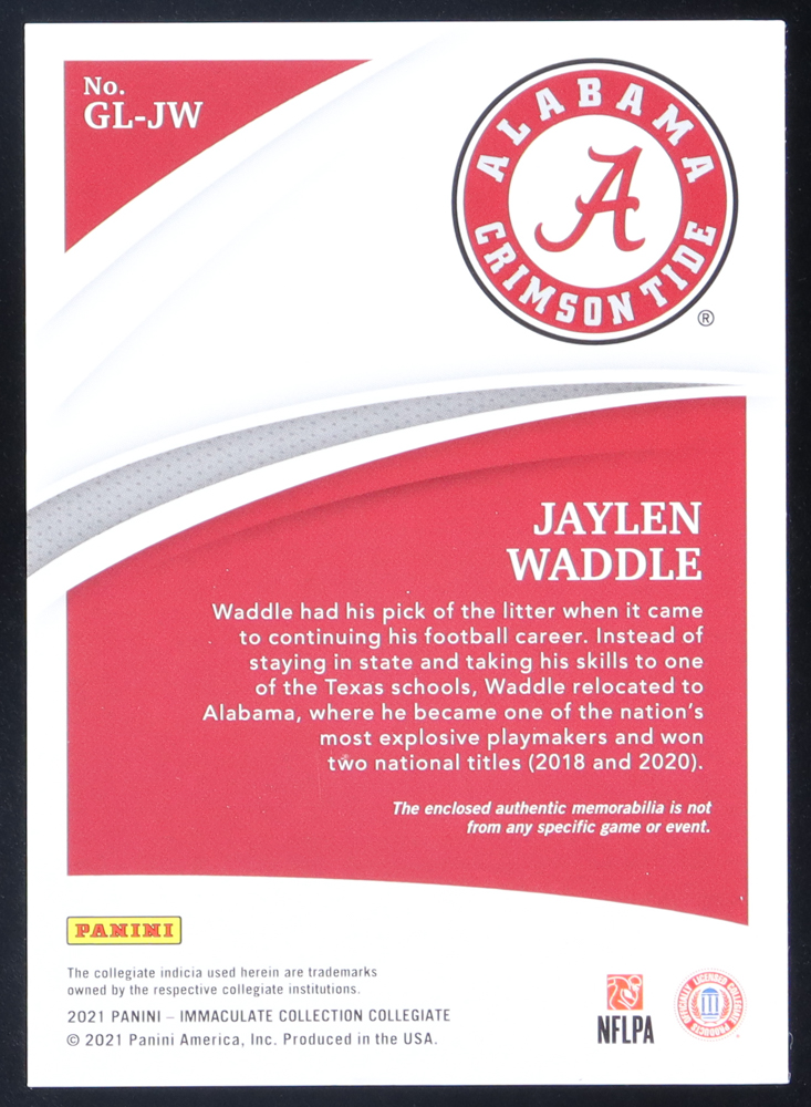 Jaylen Waddle 2021 Immaculate Collection Collegiate Immaculate Gloves RC #10 #38/88