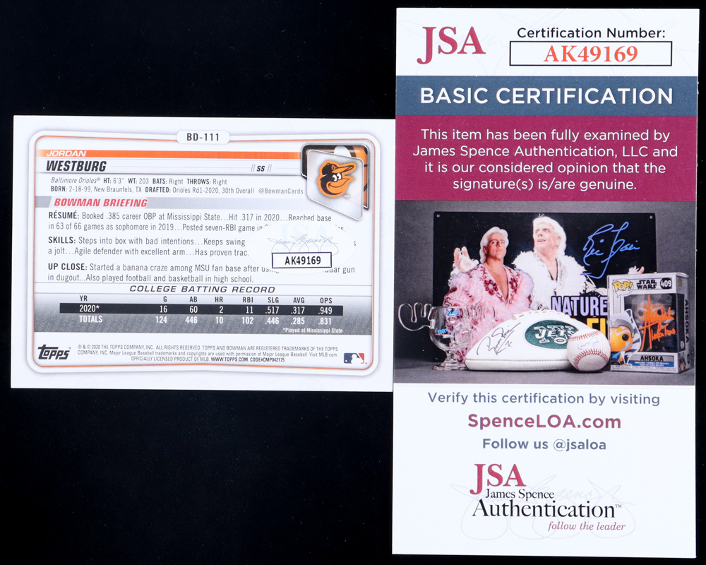 Jordan Westburg Signed 2020 Bowman Draft 1st Edition #BD111 (JSA)