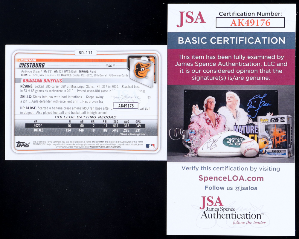 Jordan Westburg Signed 2020 Bowman Draft 1st Edition #BD111 (JSA)