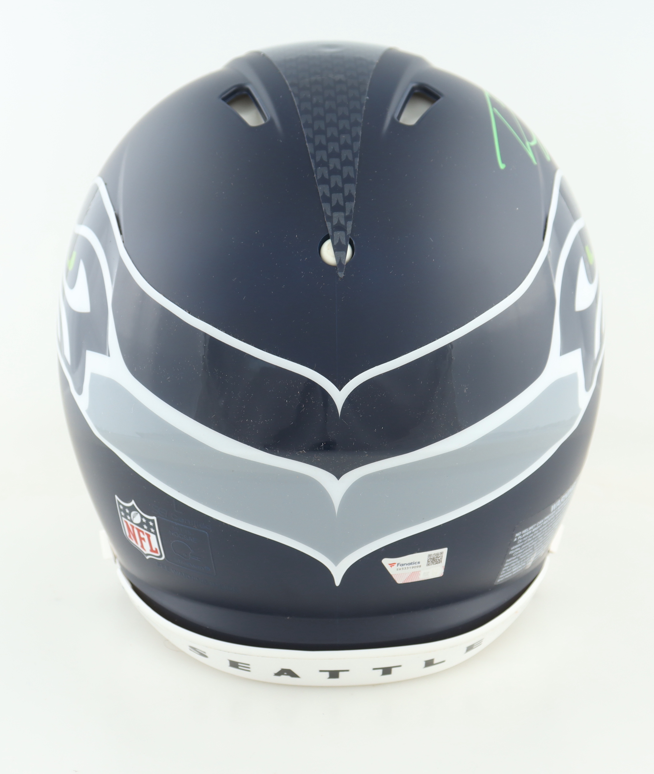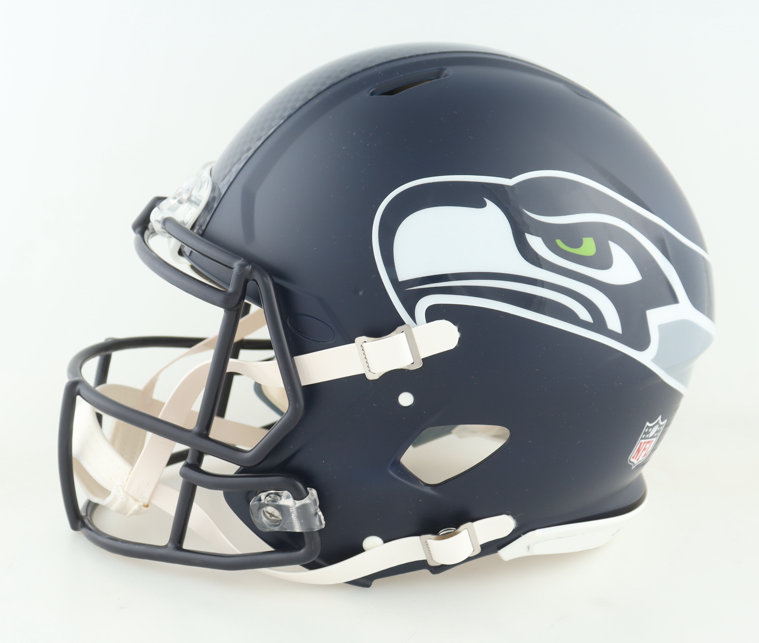Riddell Seattle Seahawks Full-Size authentic on-field Speed Helmet has been hand-signed and inscribed by Russell Wilson.