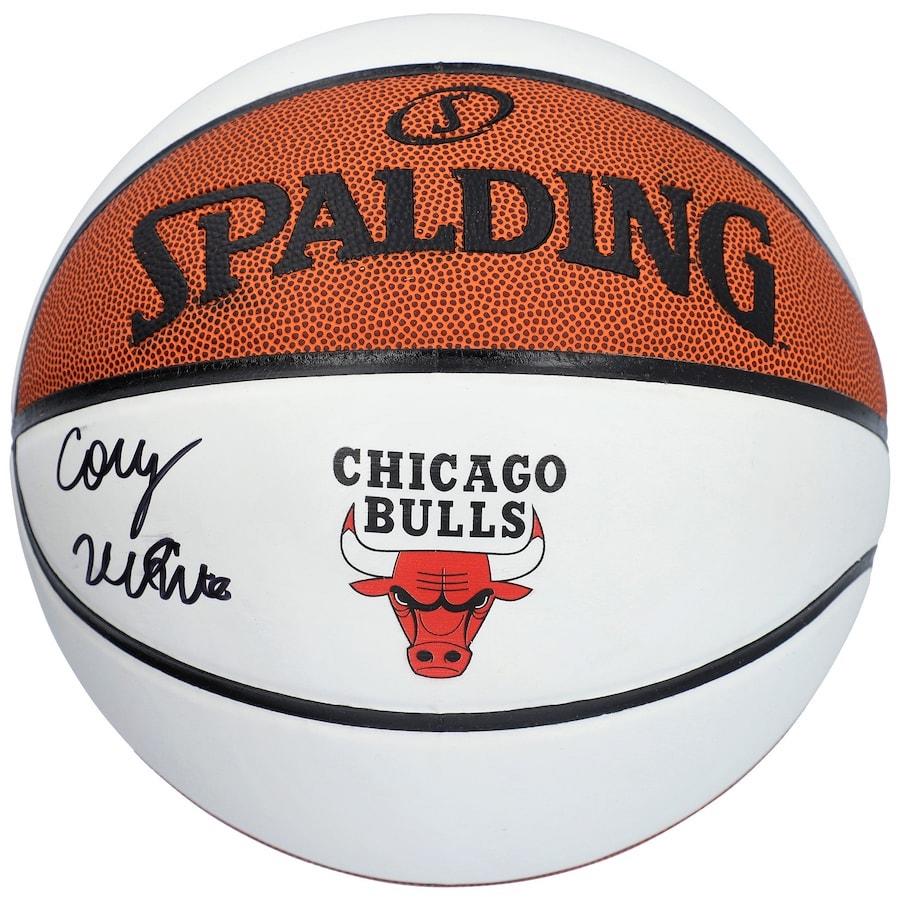 Spalding NBA Chicago Bulls logo basketball has been hand-signed by guard Coby White.