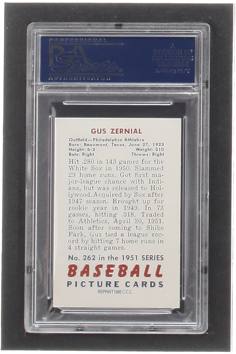 Gus Zernial Signed 1986 Card Collectors Company '51 Bowman Reprints #262 (PSA)