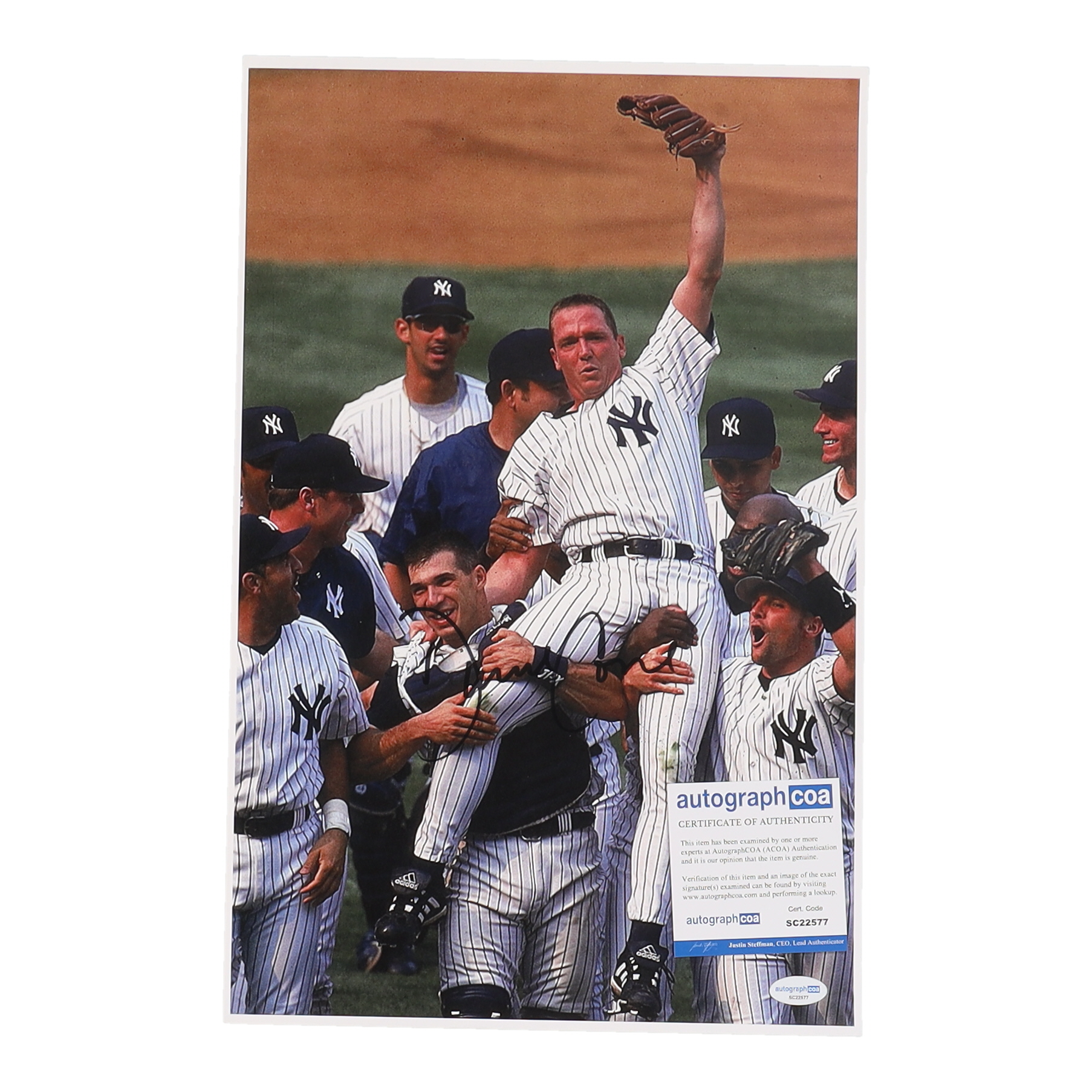 Photo measures 11" x 17" in size and has been hand-signed by David Cone (New York Yankees).