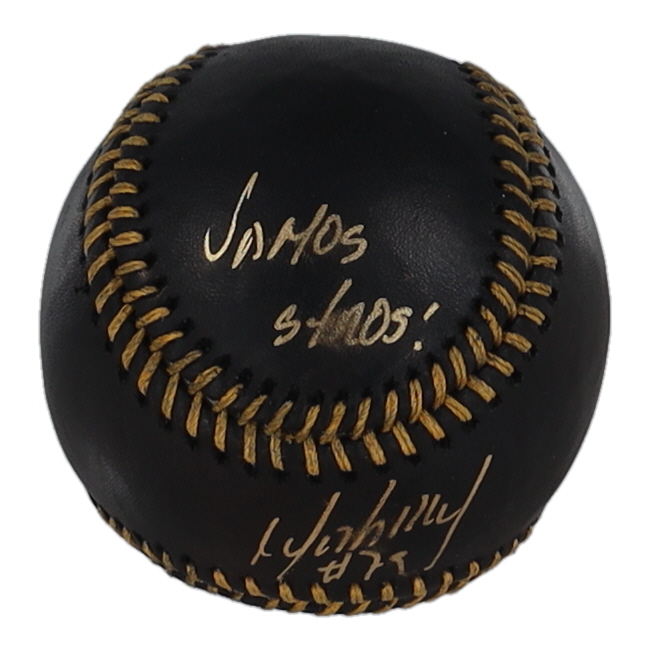 Rawlings Official Major League black leather baseball. Hand-signed and inscribed by Jose Abreu (Chicago White Sox).