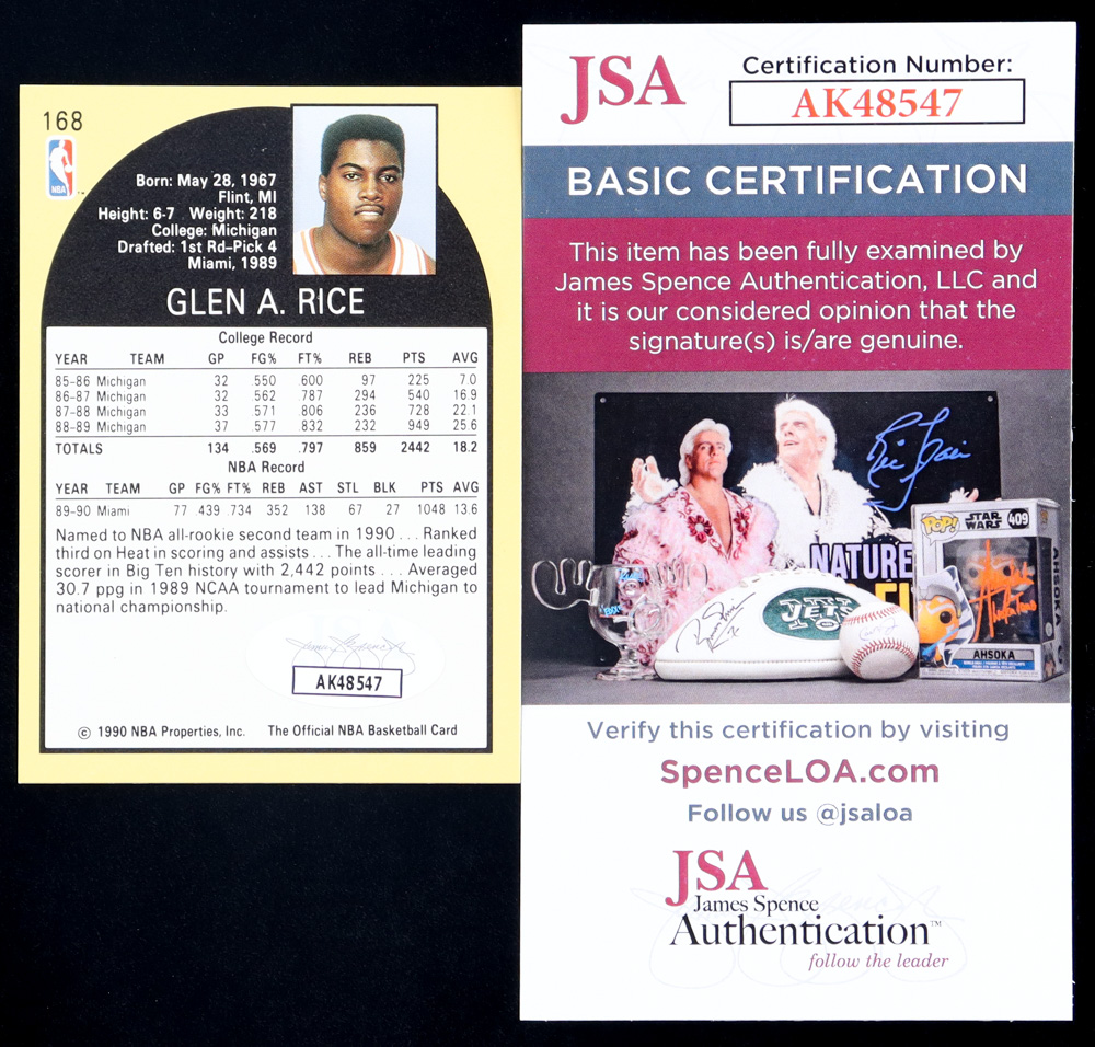 Glen Rice Signed 1990-91 Hoops #168 RC (JSA)
