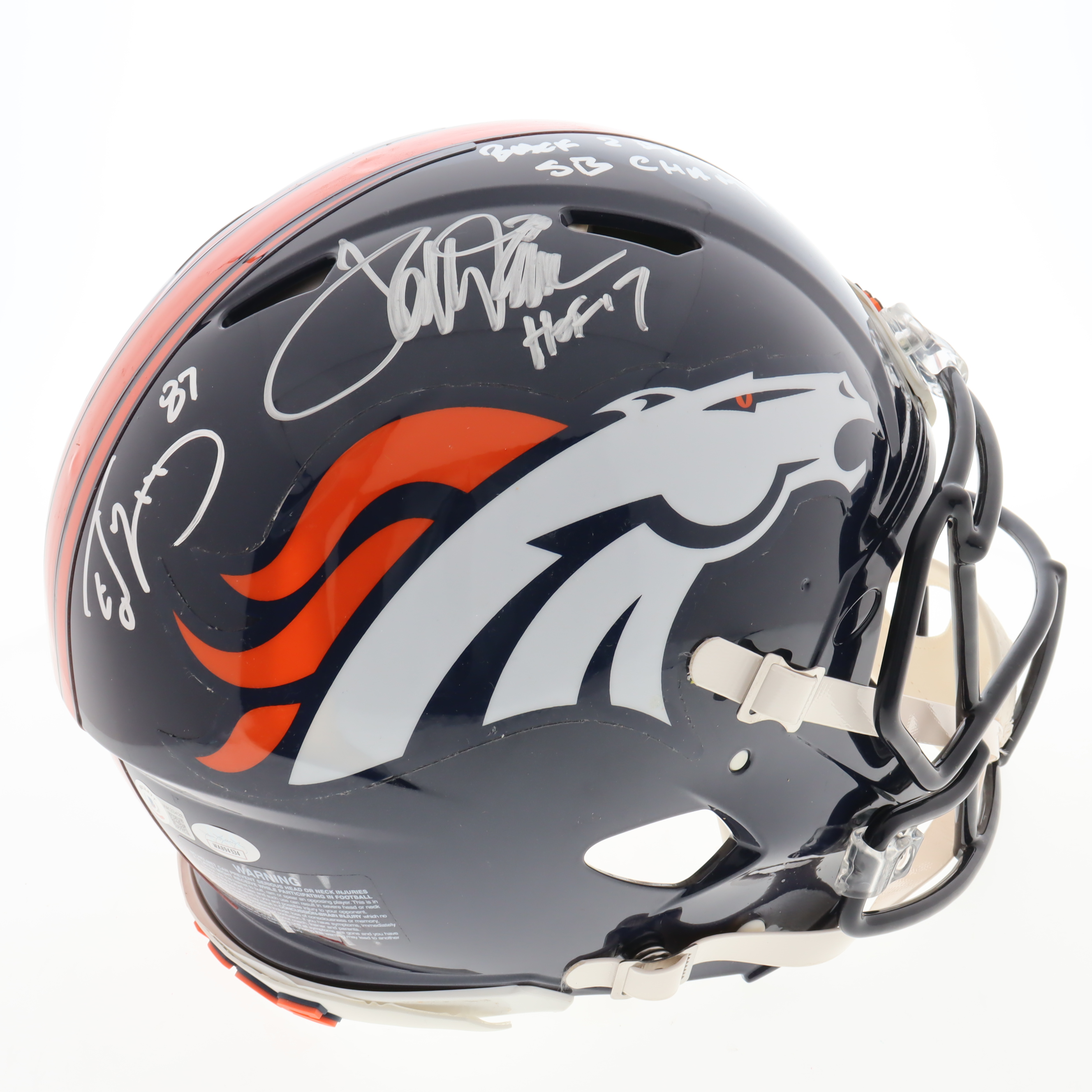 Terrell Davis & Ed McCaffrey Signed Broncos Full-Size Authentic On-Field Speed Helmet Inscribed "HOF 17" & "Back to Back SB Champs" (JSA)
