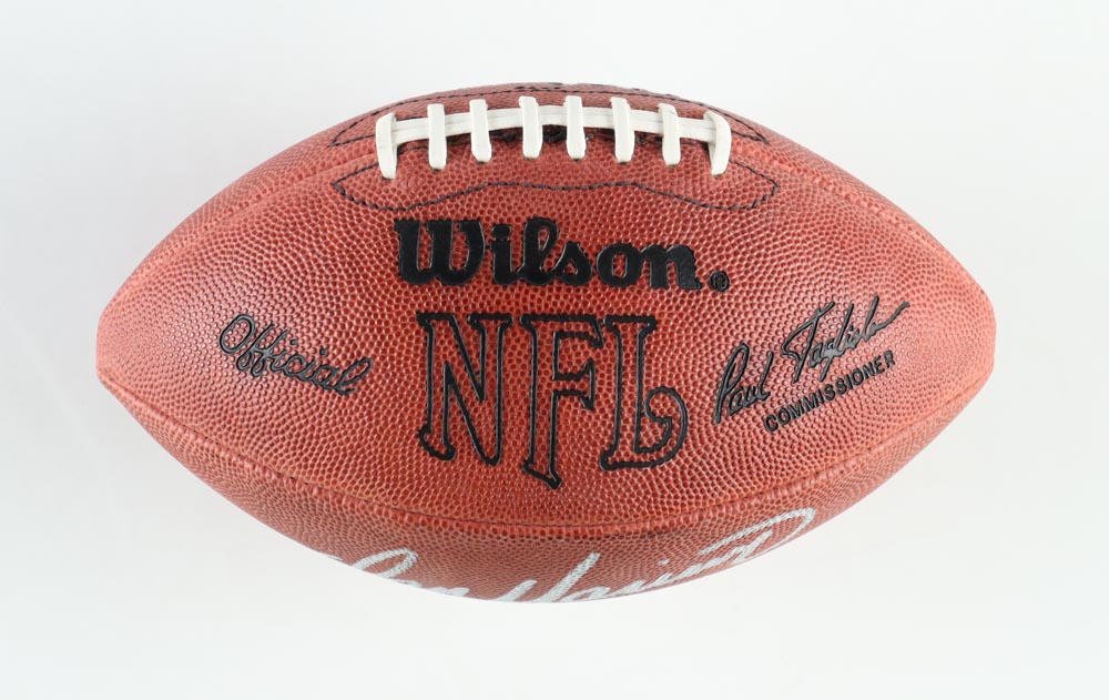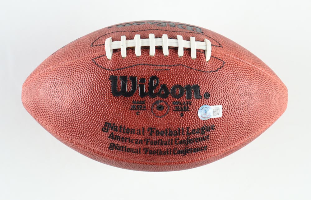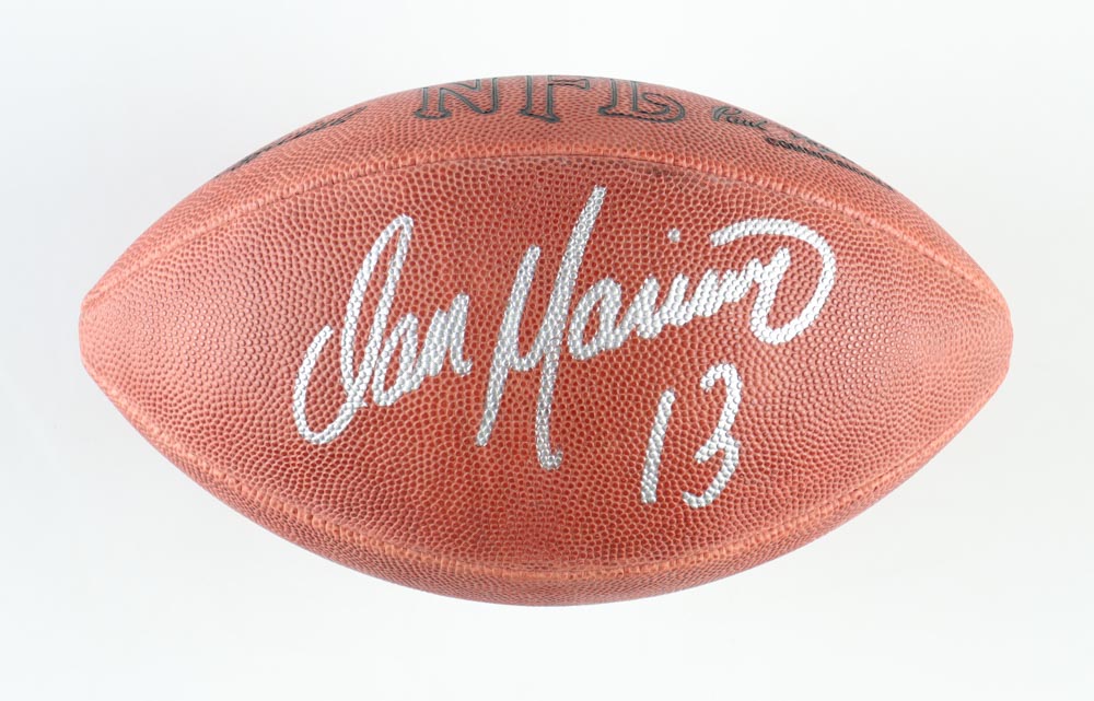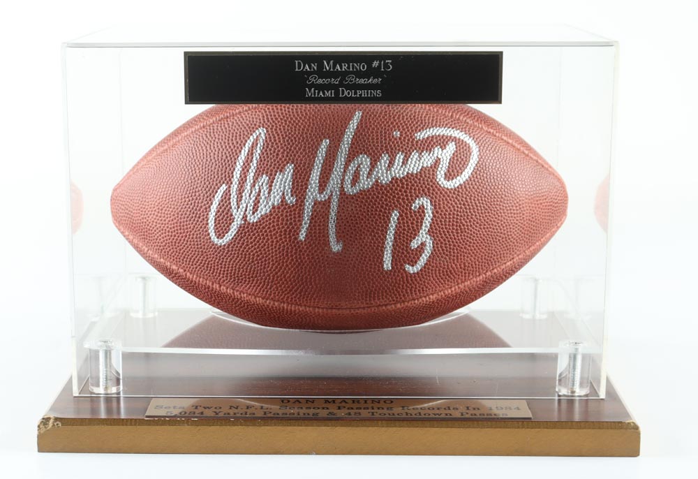 Wilson Official NFL football. Hand-signed by Dan Marino (Miami Dolphins, HOF). Display case is included as shown. Please note, there is scuffing on the display case as well as corner wear on the front of the display base.