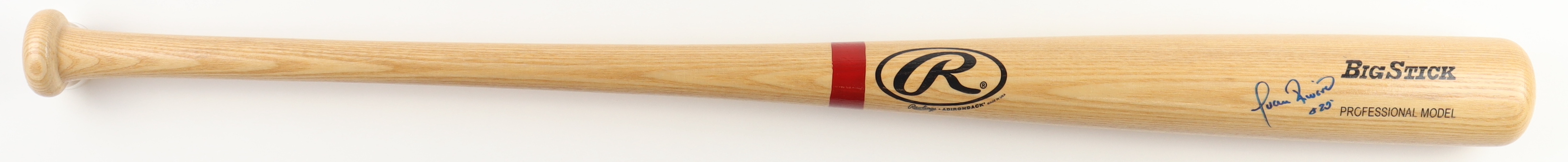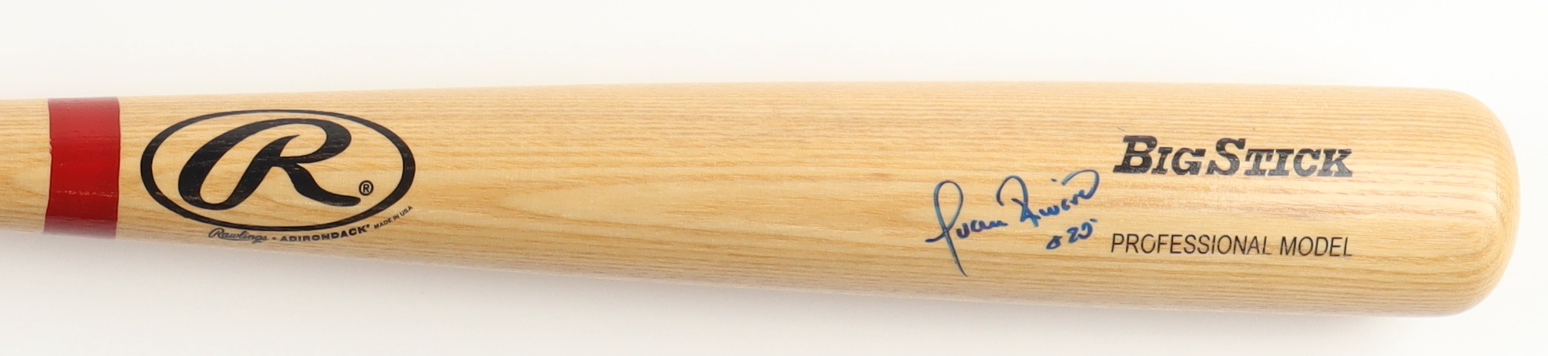 Rawlings Adirondack Big Stick baseball bat. Hand-signed and inscribed by Juan Rivera (Los Angeles Dodgers).
