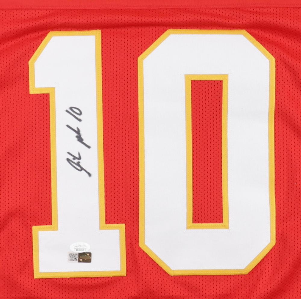 Custom jersey with everything sewn on, size XL. Has been hand-signed by Isiah Pacheco.