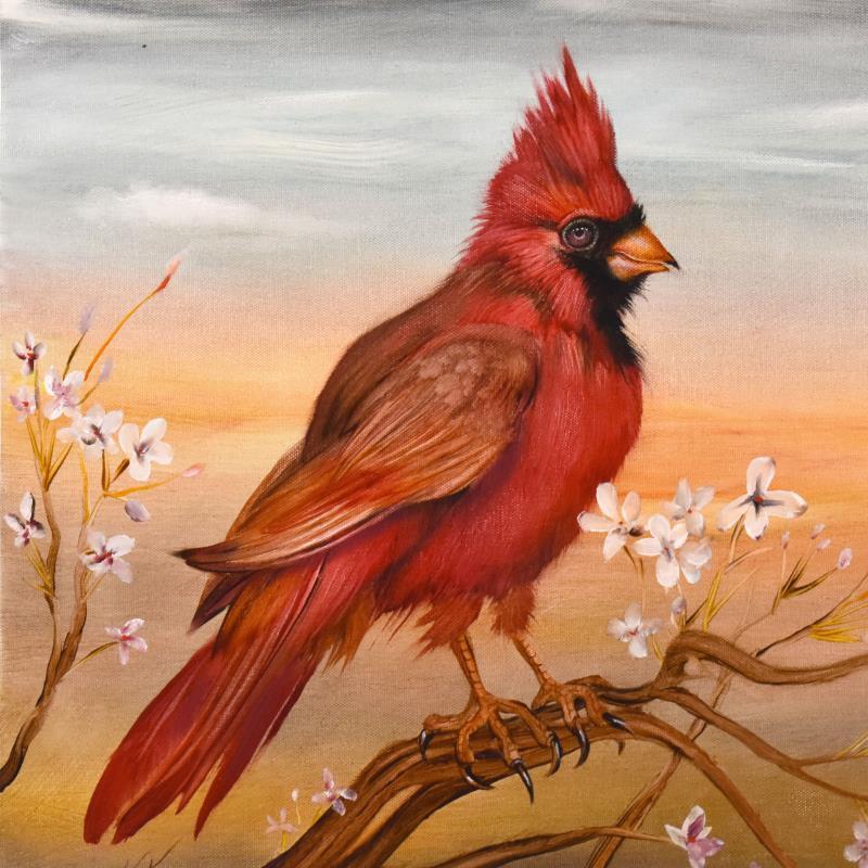 Martin Katon Signed "Cardinal with a Secret" 20x20 Original Oil Painting on Canvas (PA)