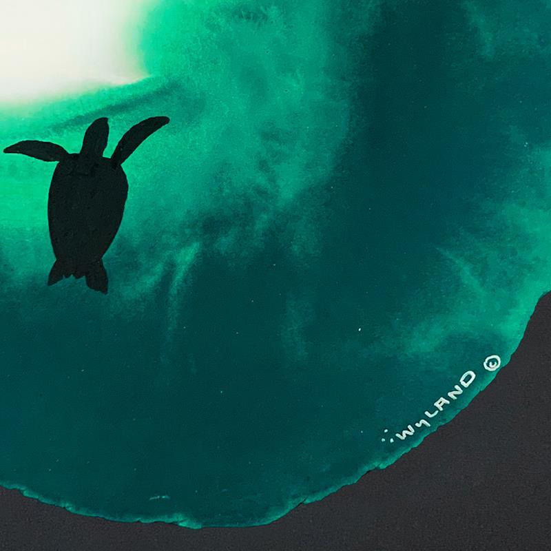 "Swim to the light" is an original painting, watercolor on deckle edge paper by Wyland. Hand signed by the artist, the piece comes custom framed and with a letter of authenticity. Measures approximately 30" x 30" (framed), 19.5" x 19.5" (image).
