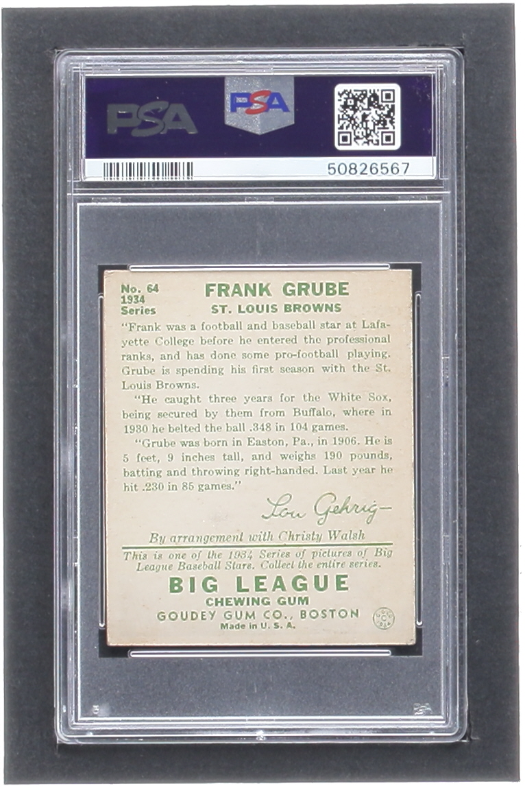 Frank Grube 1934 Goudey #64 RC (PSA 4.5)