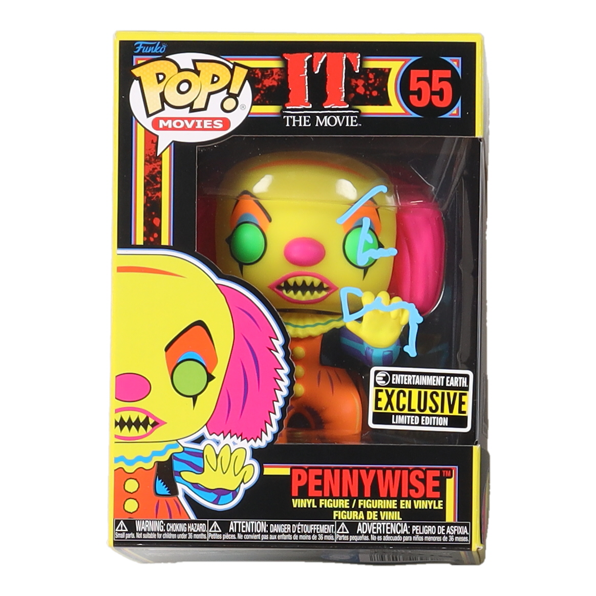 Funko Pop! figure measures approximately 4" tall and has been hand-signed on the packaging by Tim Curry (Pennywise The Clown).