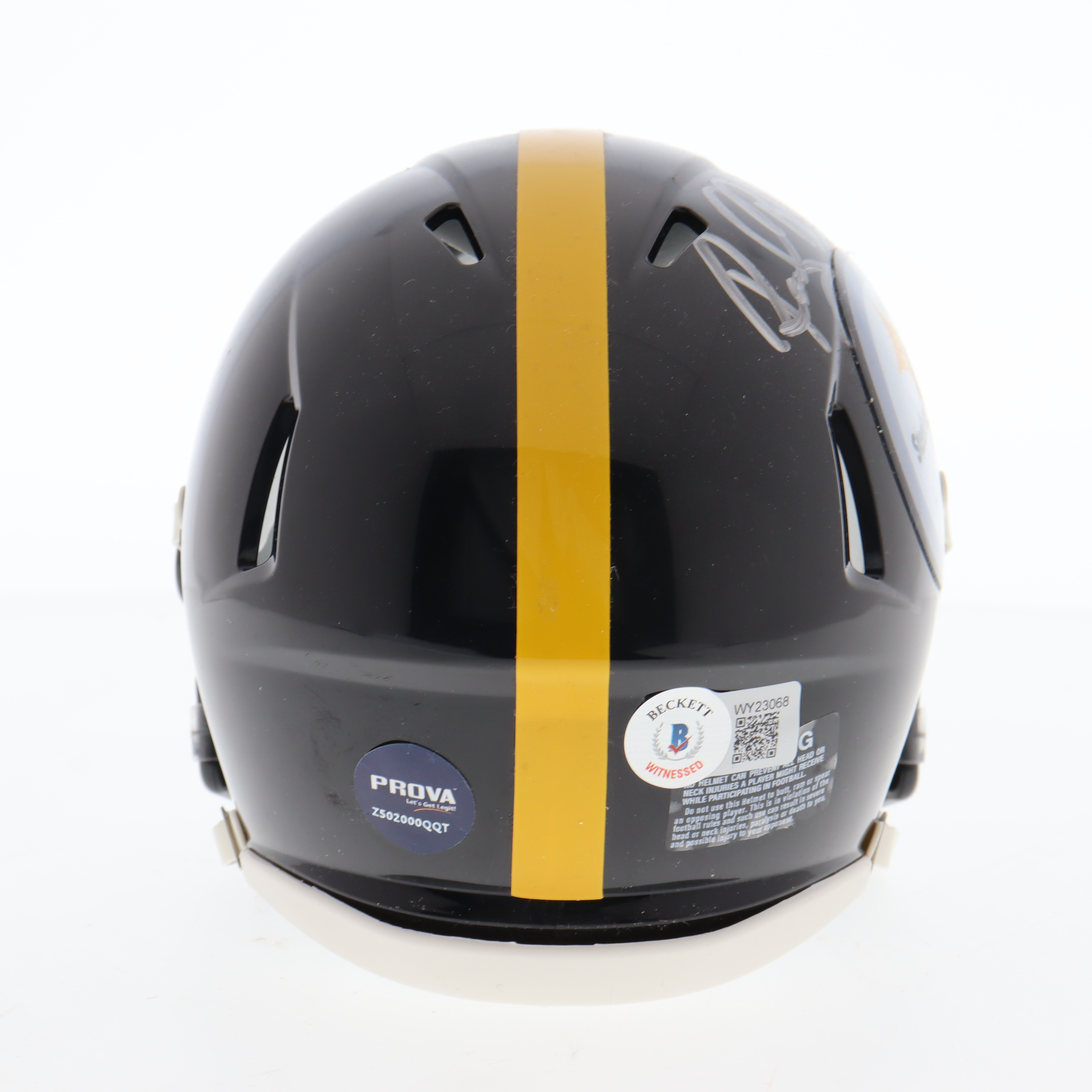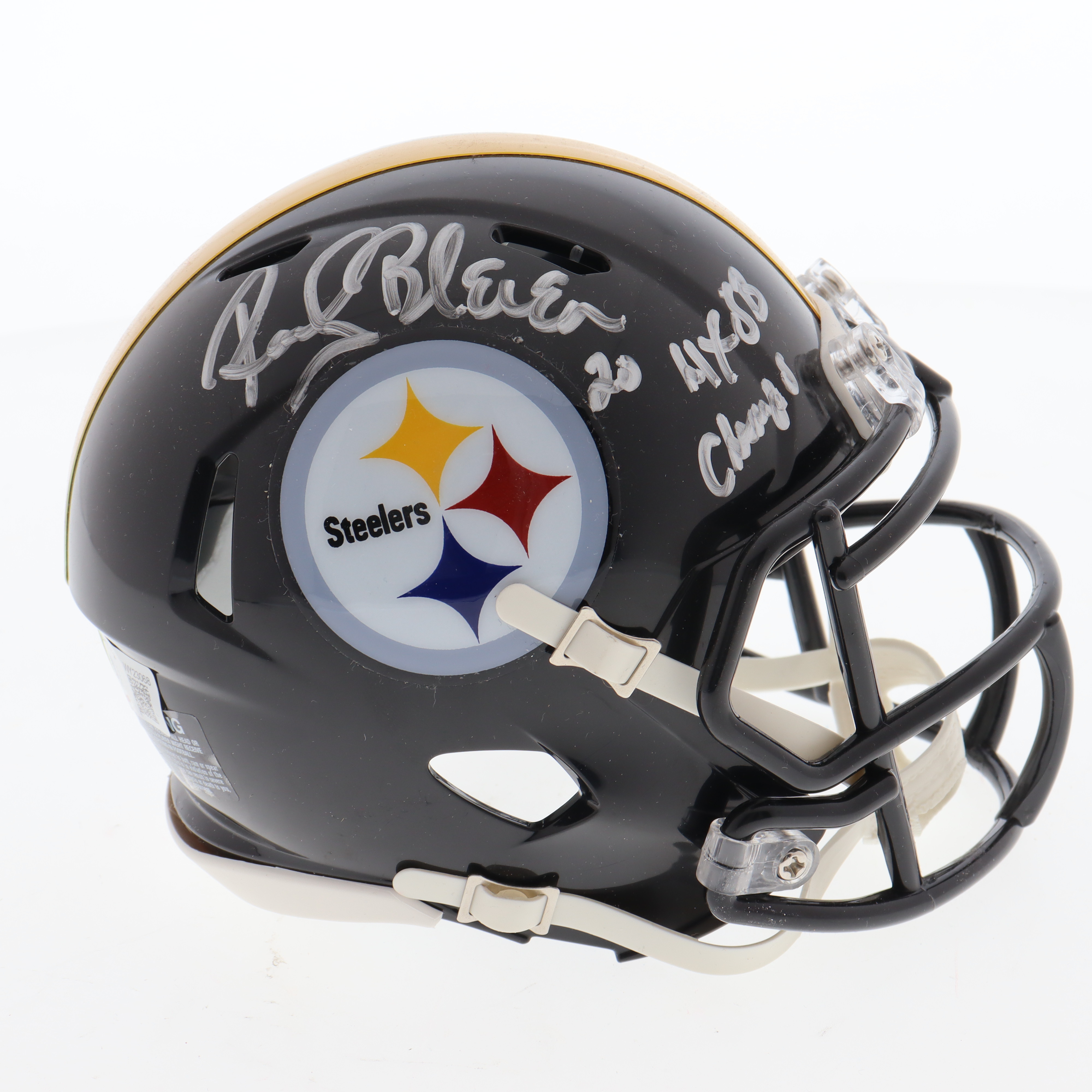 Riddell Pittsburgh Steelers Speed mini helmet. Hand-signed and inscribed by Rocky Bleier.