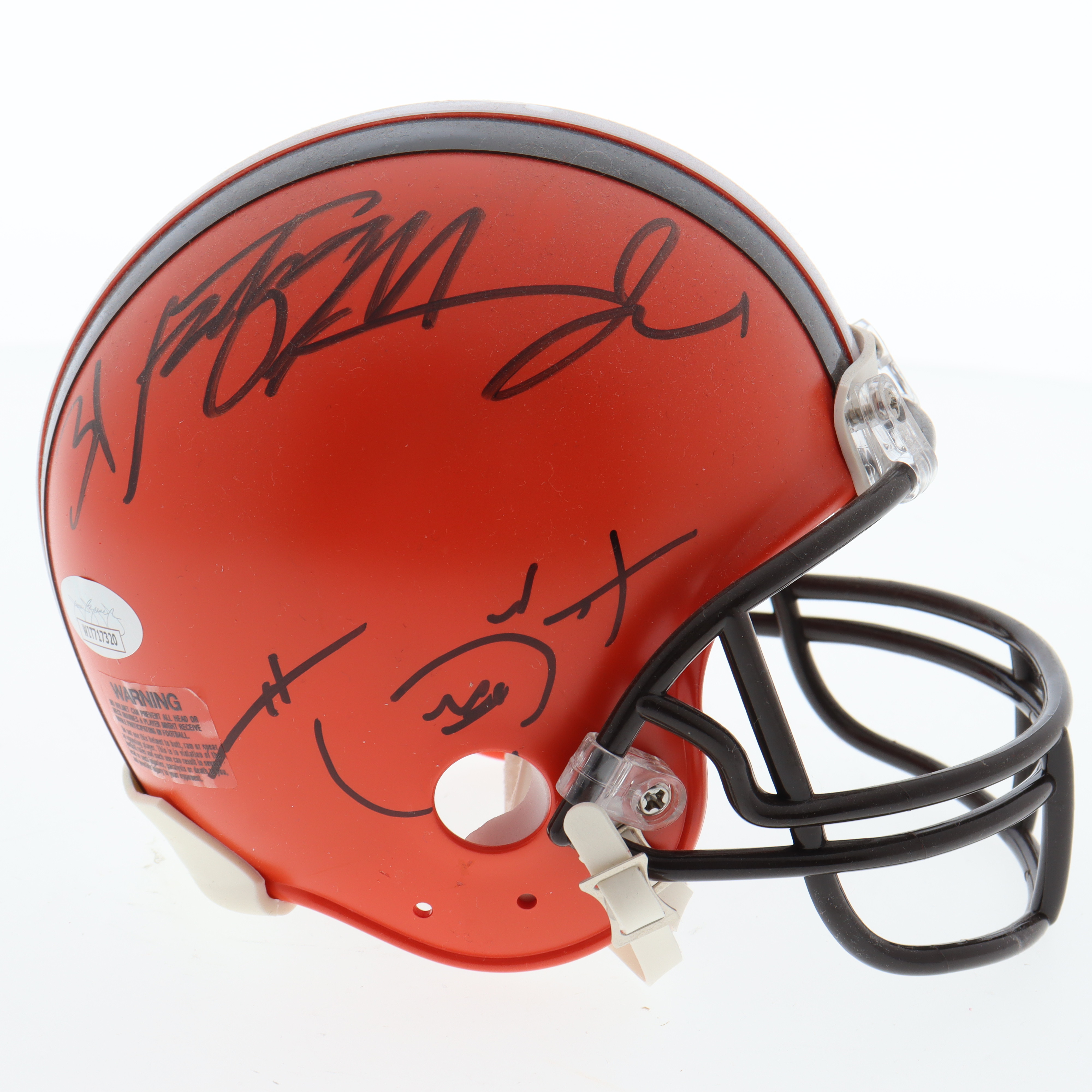 Riddell Cleveland Browns mini helmet. Hand-signed by Hanford Dixon and Frank Minnifield.
