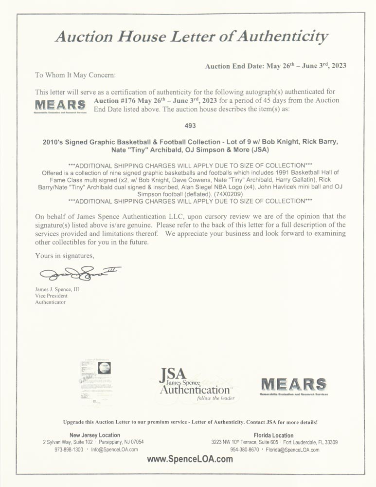The autograph(s) includes a James Spence Authentication (JSA) Auction House LOA for authenticity purposes.