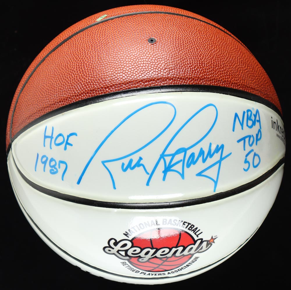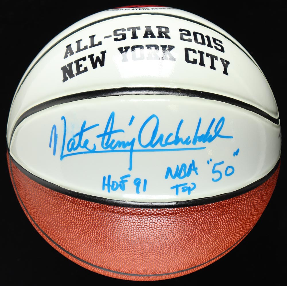 2015 All-Star game logo basketball. Hand-signed and inscribed by Rick Barry (Golden State Warriors, HOF) and Nate "Tiny" Archibald (Kansas City Kings, HOF). The basketball is limited edition of 50 produced.