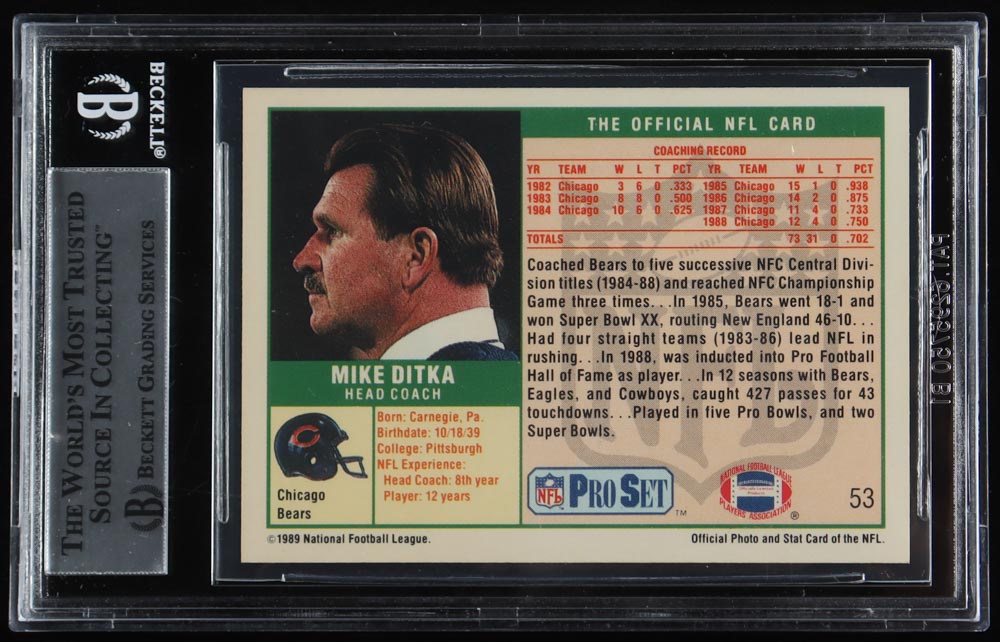 Mike Ditka Signed 1989 Pro Set #53A (Beckett)