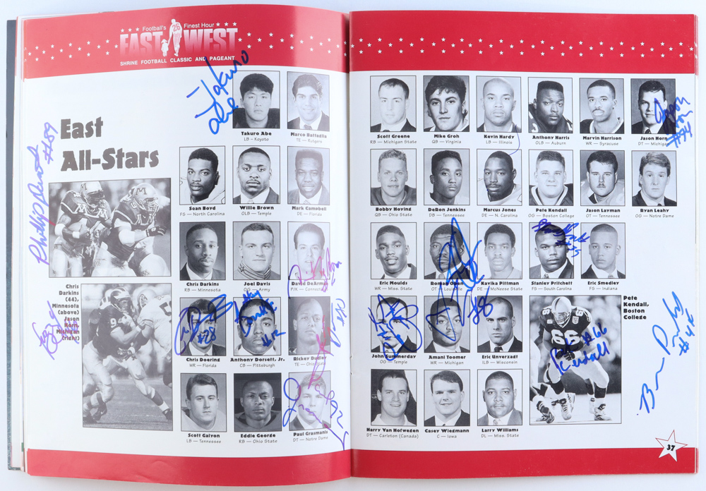 71st Annual East West Shrine Football Game Souvenir Program Signed by (29) with Kellen Winslow, Takuro Abe, Anthony Dorsett Jr., Chris Doering (JSA)