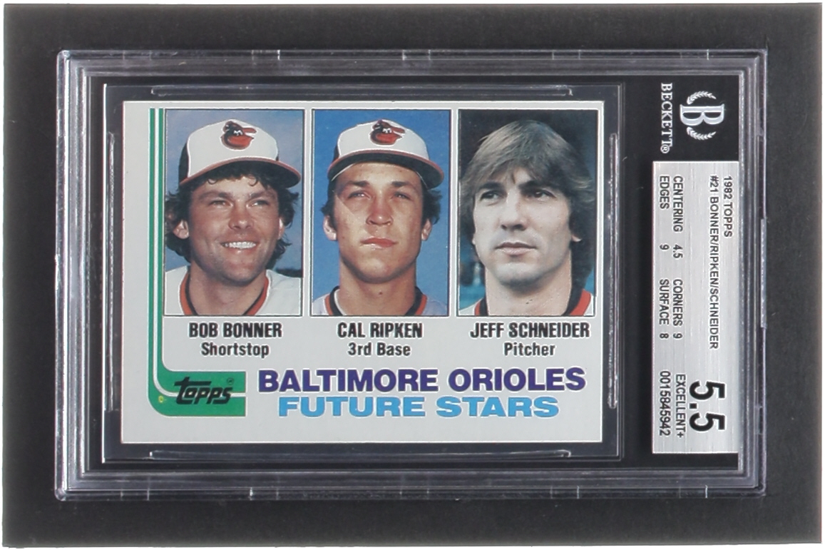 Bob Bonner / Cal Ripken / Jeff Schneider 1982 Topps #21 RC (BGS 5.5)