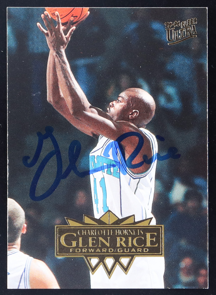 Card has been hand-signed by Glen Rice (Charlotte Hornets). Please see photos for more details regarding the condition of the card.