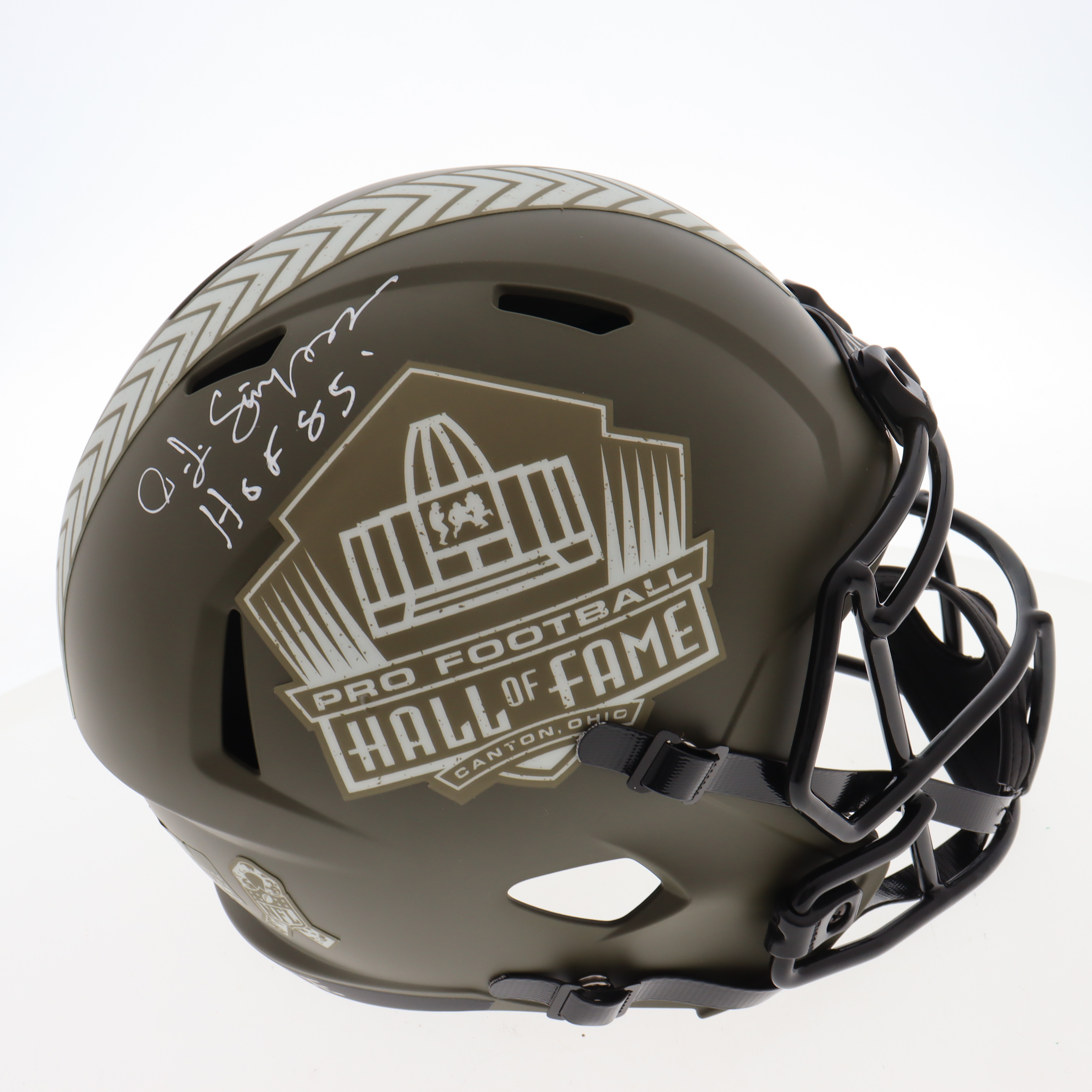 O. J. Simpson Signed Pro Football Hall of Fame Full-Size Salute to Service Alternate Speed Helmet Inscribed "HOF 85" (JSA)