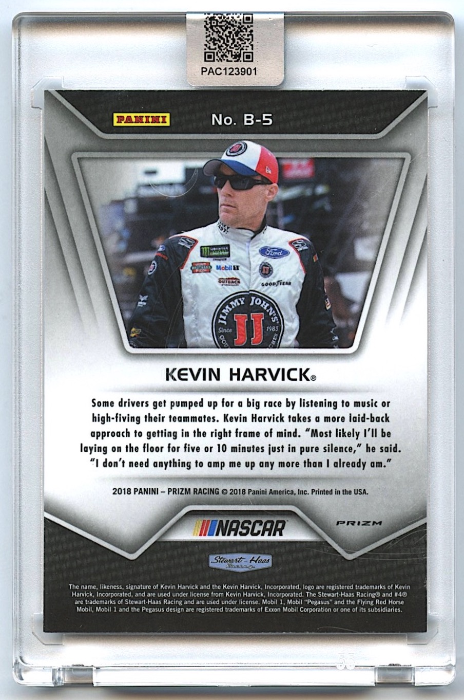 Kevin Harvick Signed 2018 Panini Prizm Brilliance #5 Prizms Silver (PA Encapsulated)