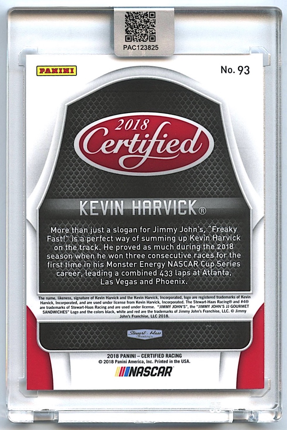 Kevin Harvick Signed 2018 Certified #93 (PA Encapsulated)