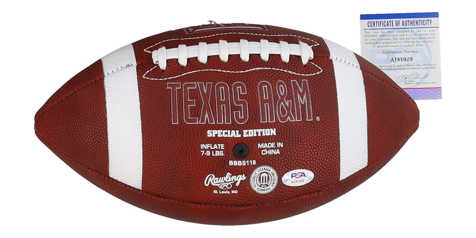 Texas A&M Aggies logo football has been hand-signed and inscribed by Johnny Manziel.