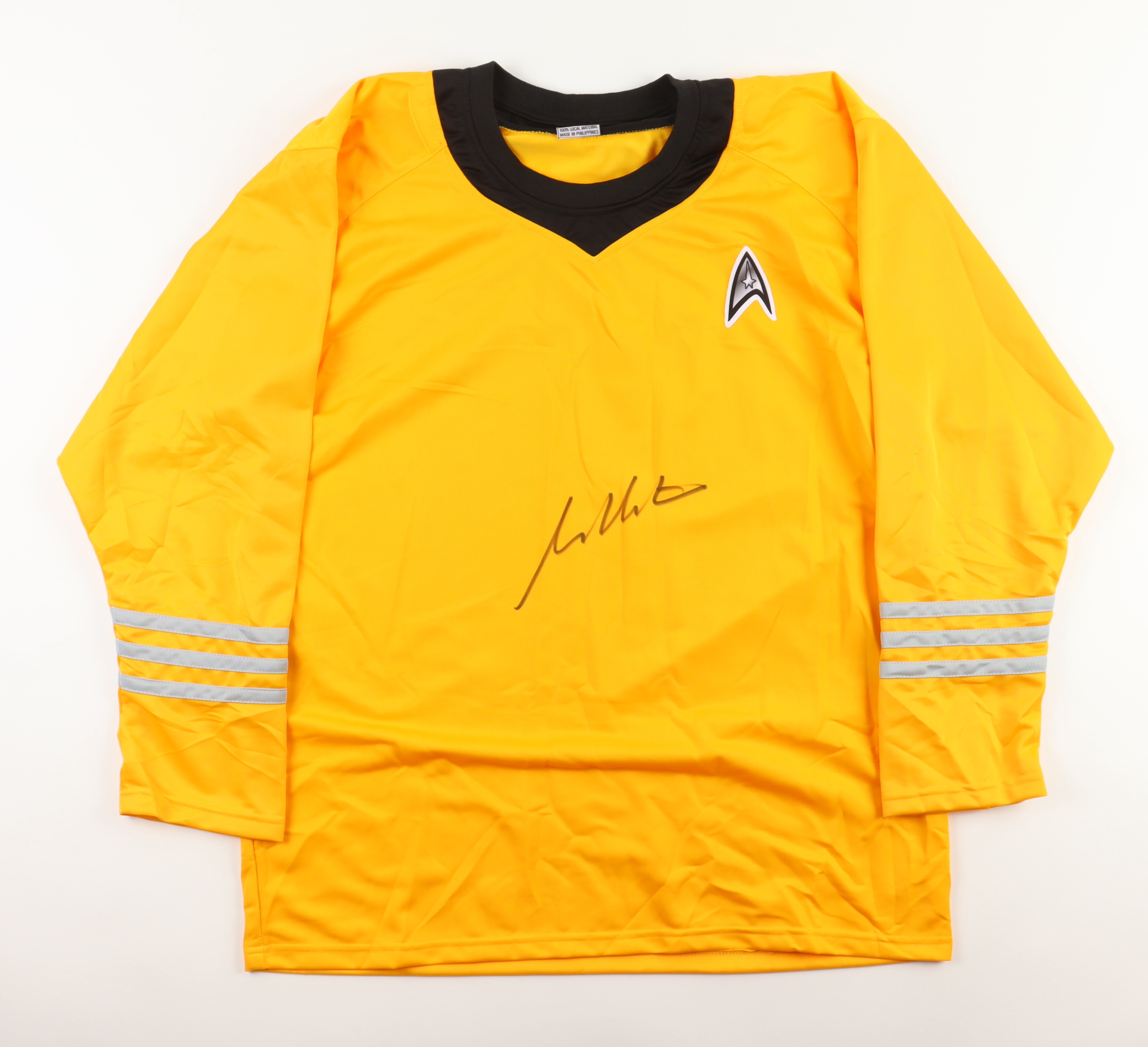 Custom Star Trek uniform. Everything sewn on, size XL. Jersey has been hand-signed by William Shatner (Captain James T. Kirk).