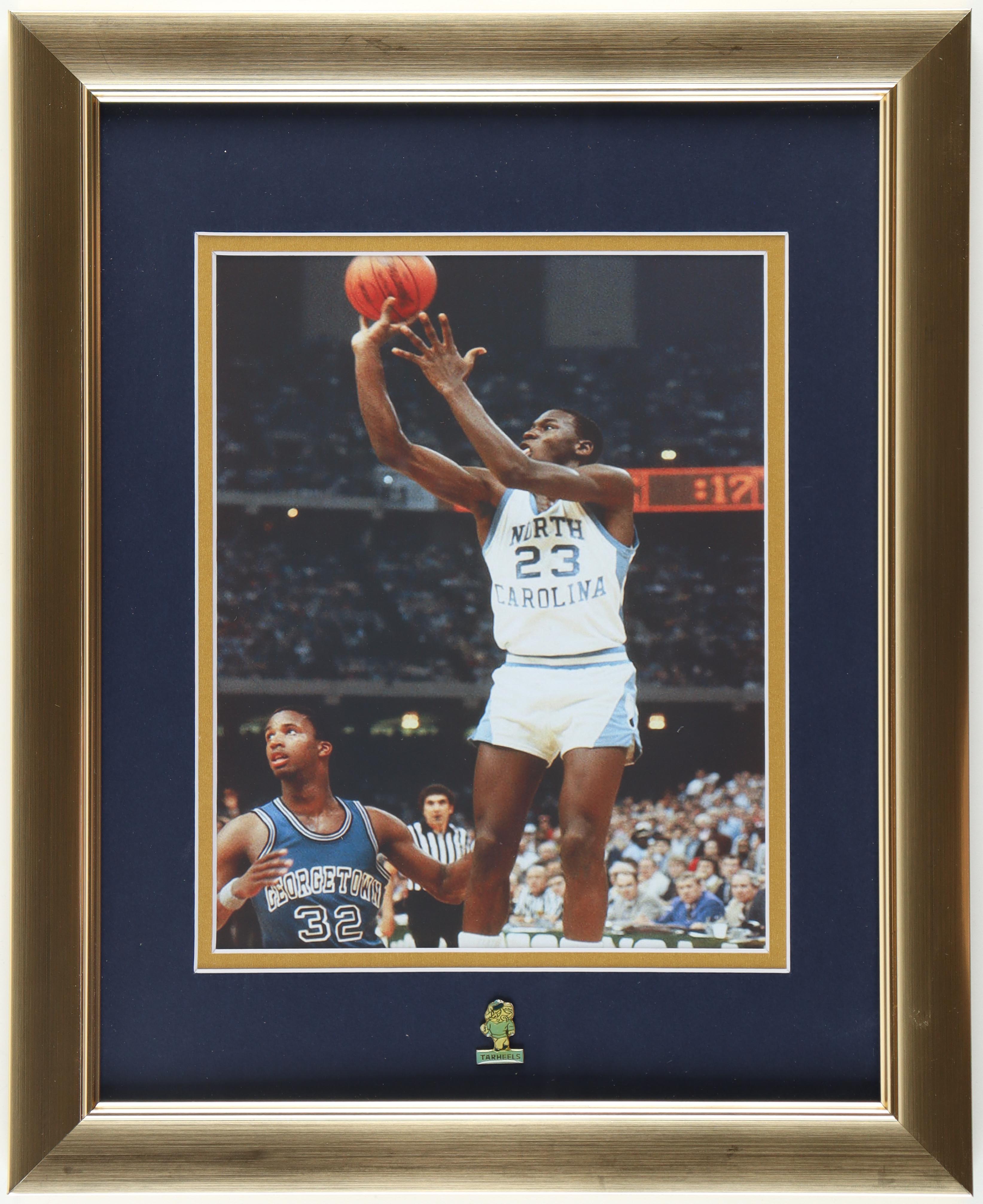 Michael Jordan North Carolina Tar Heels Custom Framed Photo Display With Tar Heels Pin