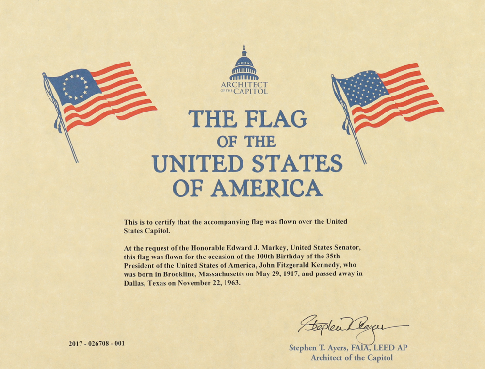American Flag Flown Over the Capitol Commemorating John F. Kennedy's 100th Birthday (Architect of the Capitol)