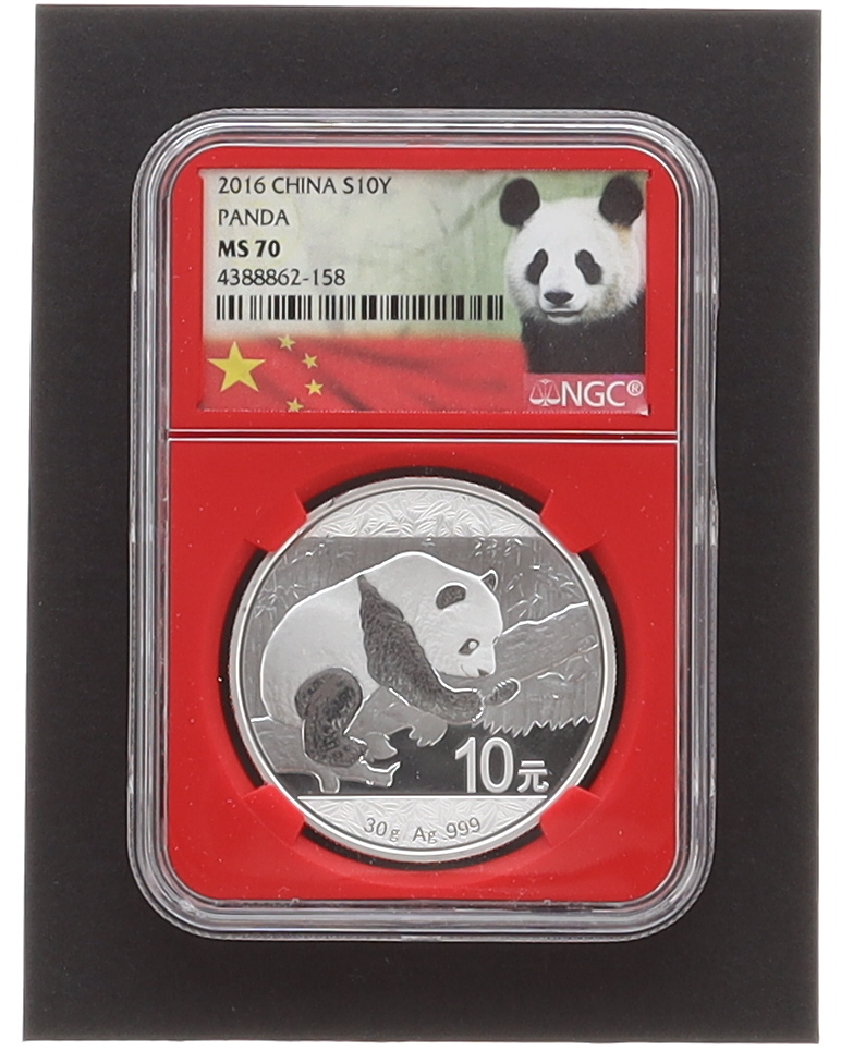 2016 China S 10 Yuan Silver Panda Coin - Red Core Panda Label (NGC MS70)