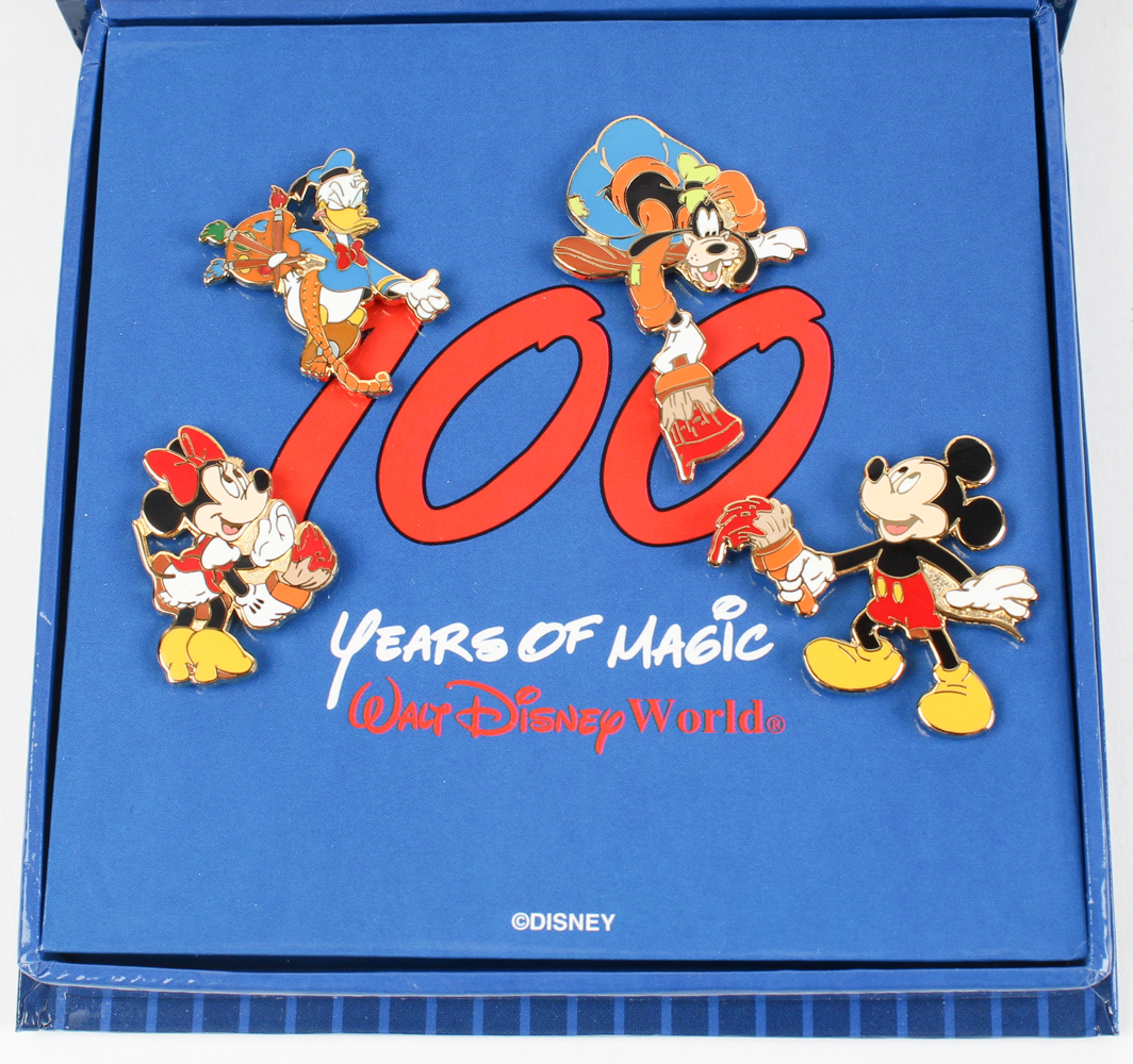 Disney "100 Years of Magic" commemorative pin set. Includes (4) different commemorative pins. The set comes in the original case, see photos for details.