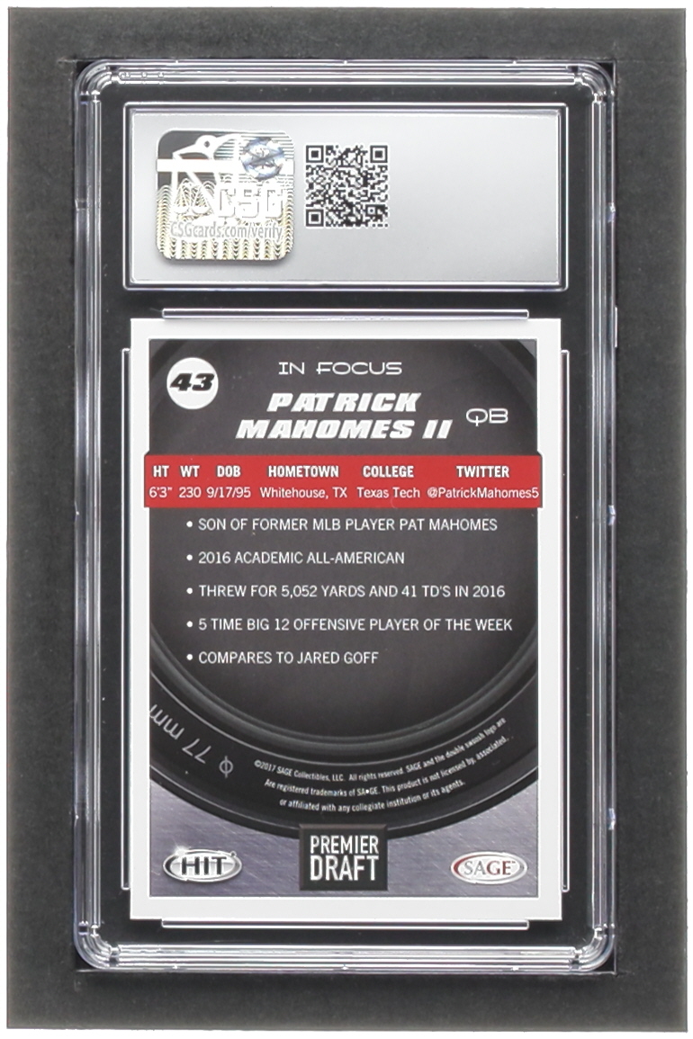 Patrick Mahomes II 2017 SAGE HIT Premier Draft #43 IF RC (CSG 10)