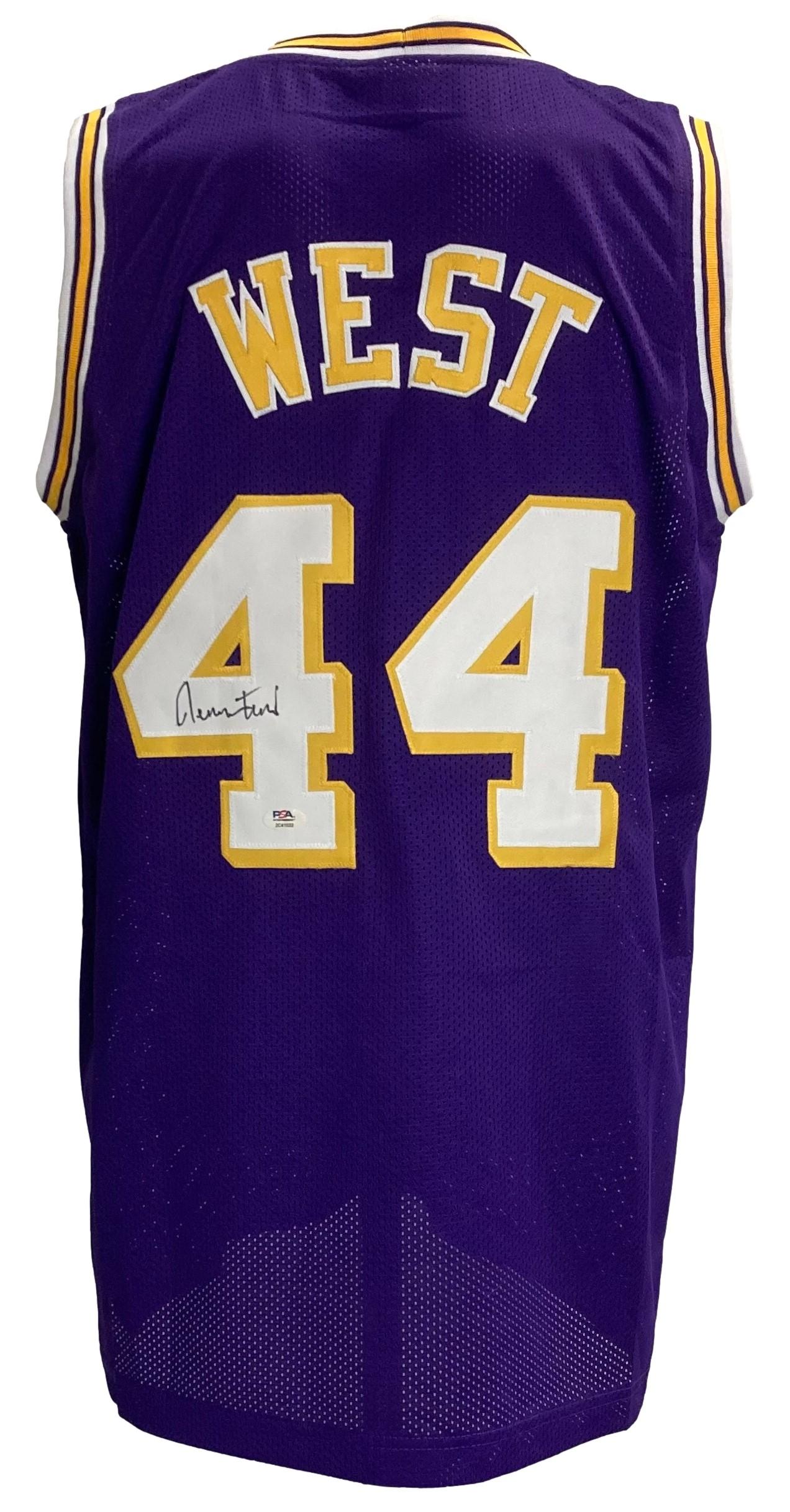 Custom jersey. Everything sewn on, size XL. Hand-signed by Jerry West (HOF).