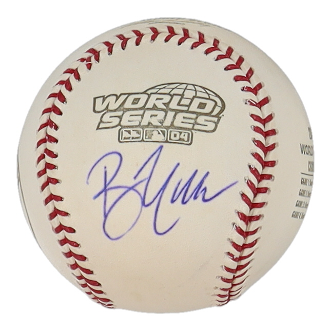 Rawlings Official 2004 World Series baseball. Hand-signed by Bill Mueller (Boston Red Sox). Please note, the baseball is naturally toned.