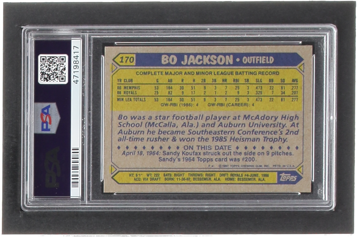 Bo Jackson 1987 Topps #170 RC (PSA 10)