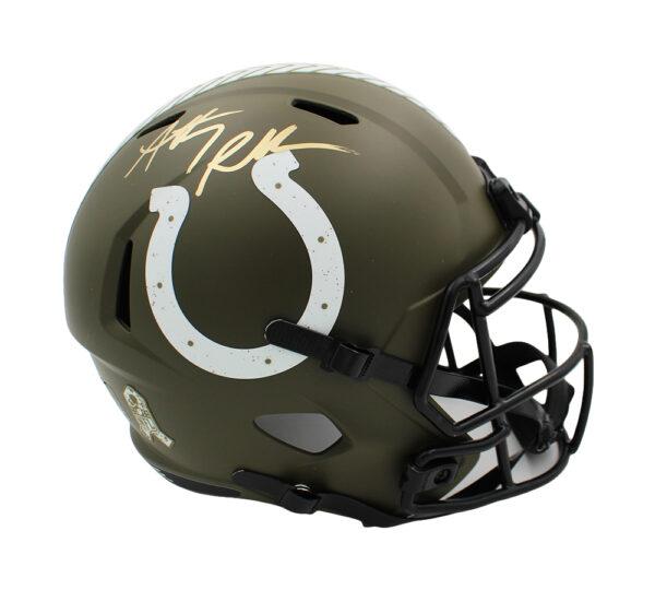 Riddell Indianapolis Colts Salute to Service Full-Size Speed Helmet hand-signed by Anthony Richardson.