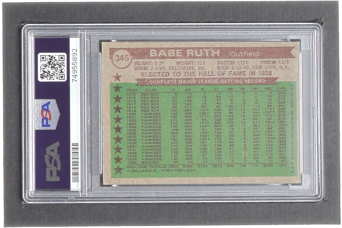 Babe Ruth 1976 Topps #345 ATG (PSA 4)