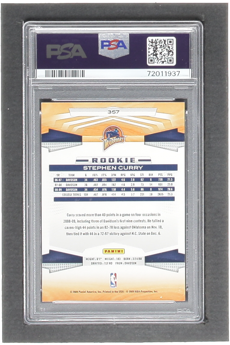 Stephen Curry Signed 2009-10 Panini #357 RC (PSA | Autograph Graded 10)