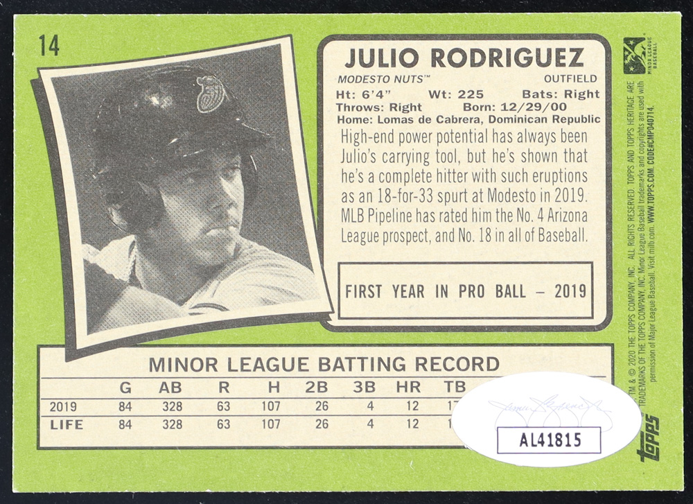 Julio Rodriguez Signed 2020 Topps Heritage Minors #14 (JSA)