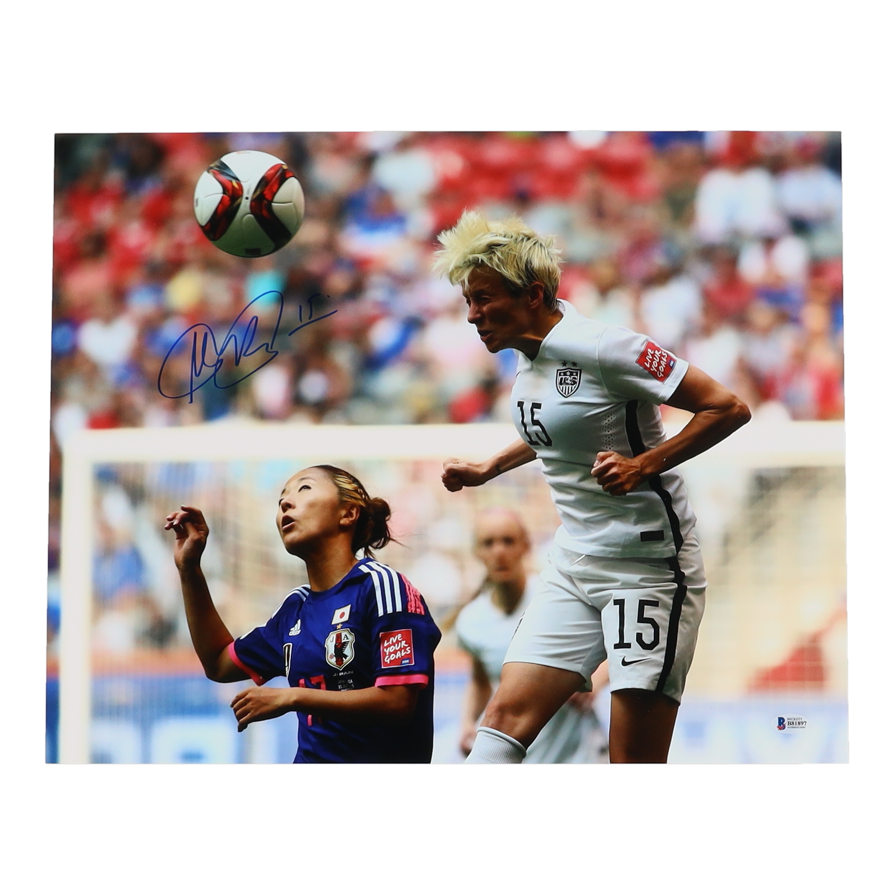 Photo measures 16" x 20" in size and has been hand-signed by Megan Rapinoe.